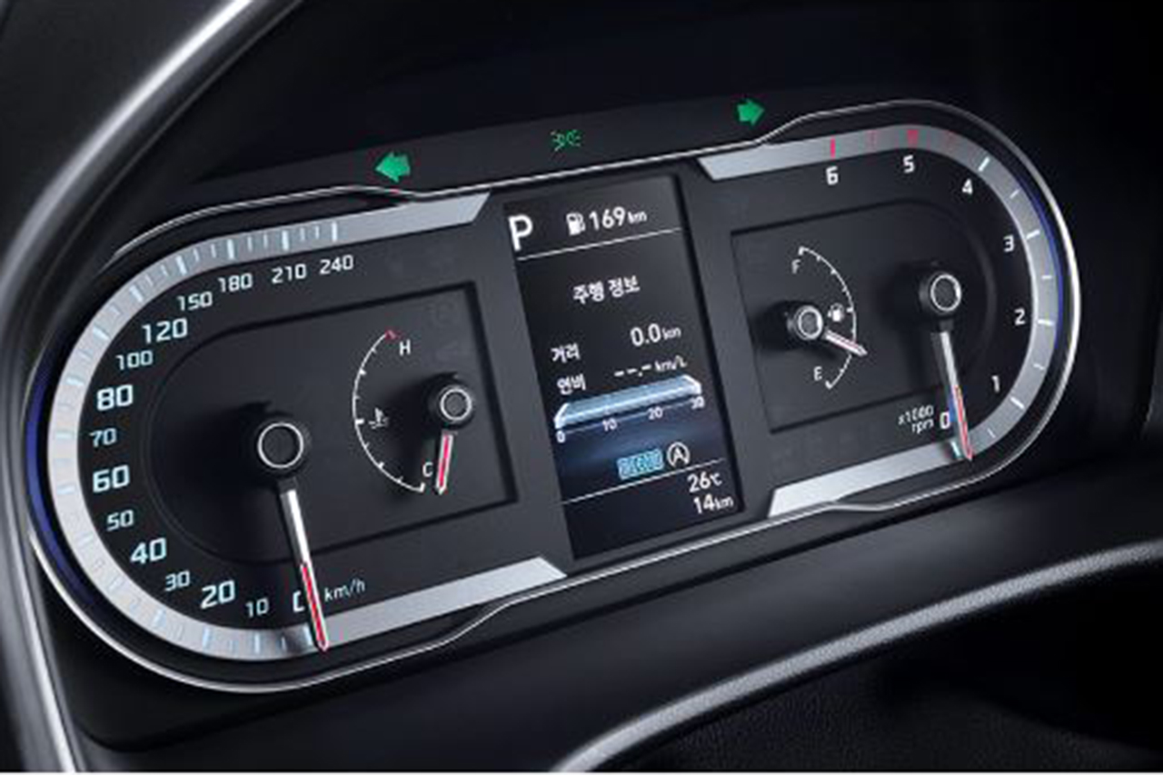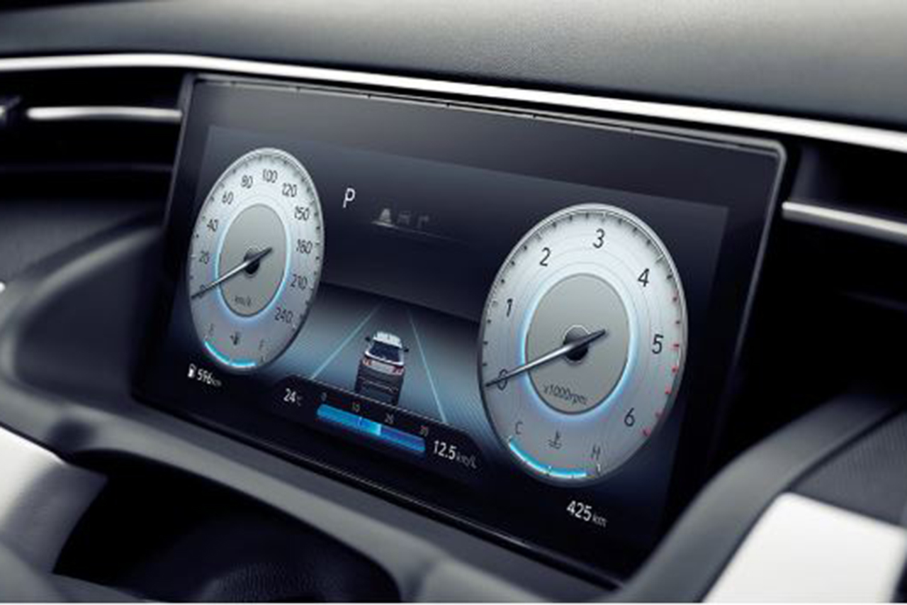 신형 투싼의 가장 기본 트림인 모던 트림에는 4.2인치 LCD 클러스터가 적용된다. 중앙의 4.2인치 컬러 LCD를 중심으로 대칭형 디자인을 사용했다. 대칭형 디자인을 채택한 만큼 RPM 게이지는 반시계 방향으로 상승하는 방식이고, 전반적인 직관성은 우수하다. 아쉬운 점은 10.25인치 오픈형 클러스터와 달리 계기판 상단에 덮개가 추가되어 전면 개방감은 다소 떨어질 것으로 보인다. 참고로 10.25인치 오픈형 클러스터의 경우에 모던 트림은 불가능하고, 프리미엄 트림부터 선택이 가능하다.
