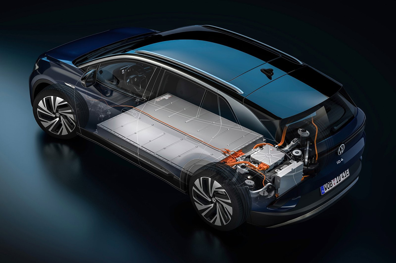 ID.4의 두 퍼스트 에디션 모델은 모두 493kg의 77 kWh 배터리를 탑재, 최대 520km(WLTP 기준)에 달하는 주행거리를 자랑한다. 알루미늄 섹션으로 구성되며 튼튼한 프레임으로 보호되는 배터리 하우징에는 12개의 배터리 모듈이 포함되어 있다. 이 배터리 모듈들은 각각 24개의 파우치 형 배터리 셀을 포함하며, 냉각수 통로가 통합된 베이스 플레이트는 배터리 내부의 열 조절을 돕는다. 폭스바겐은 이 배터리가 8년 또는 16만 km 주행거리가 지난 후에도 최초 용량의 최소 70% 유지를 보장한다.