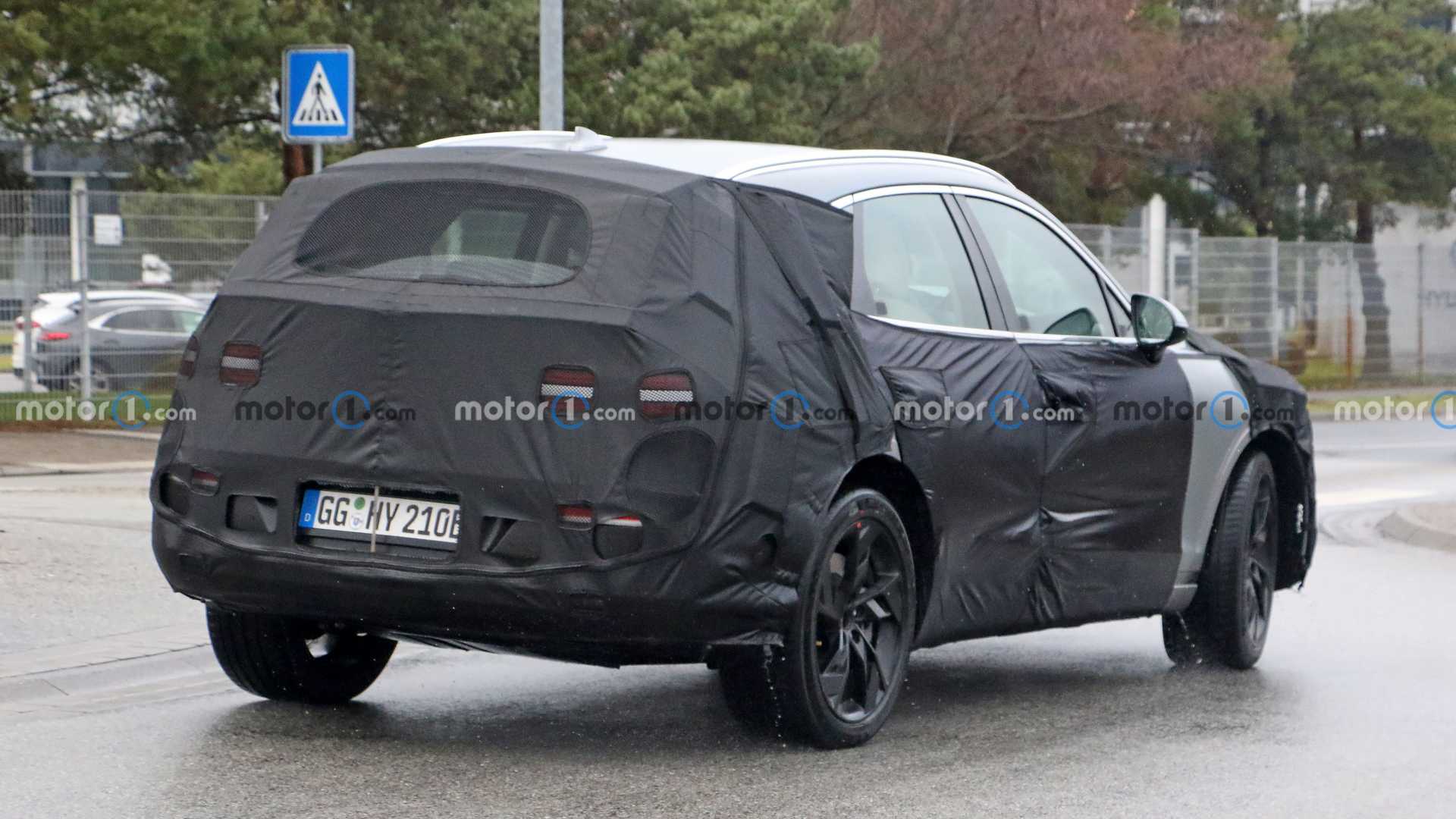 측면은 새로운 5 스포크 타입 휠과 미쉐린 타이어가 눈에 띈다. 이외의 부분은 위장막으로 가려져 있지만, 충전구도 전면 그릴에 위치한 만큼 eGV70의 측면은 휠 디자인 외에는 기존 GV70과 동일하며, 후면 역시 머플러가 제외된 것 외에는 기존 모델과 유사할 것으로 예상된다.