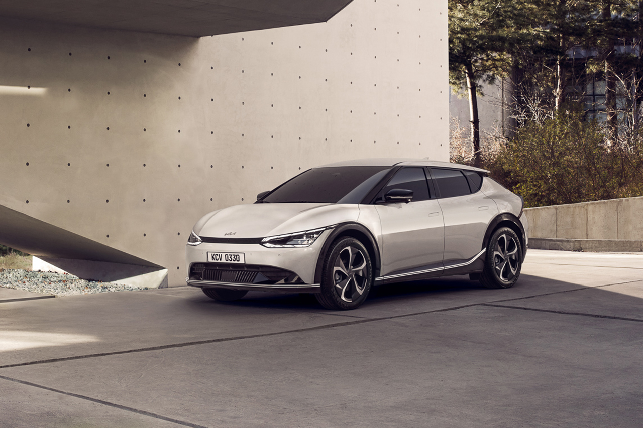 기아 EV6는 기아의 새로운 디자인 철학 ‘오퍼짓 유나이티드’가 반영된 첫 번째 전기차다. 오퍼짓 유나이티드는 상반된 개념의 창의적 융합으로 이전에 존재하지 않던 미래지향적인 디자인을 창조한다는 의미를 담고 있다. 이를 반영하는 미래지향적인 디자인과 함께 패스트백 세단, 해치백, 쿠페형 SUV가 모두 떠오르는 독특한 디자인이 적용된 것이 특징이다.