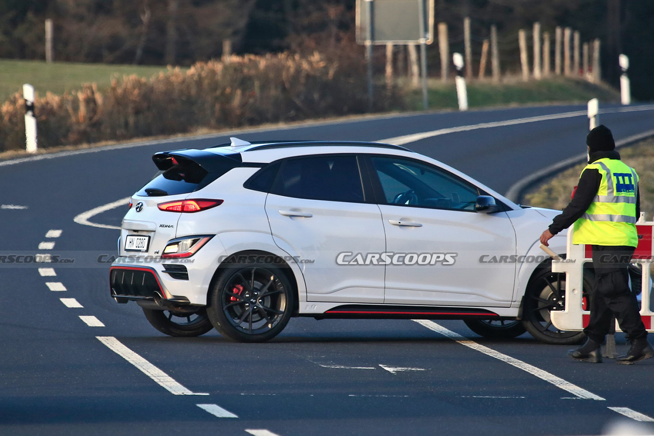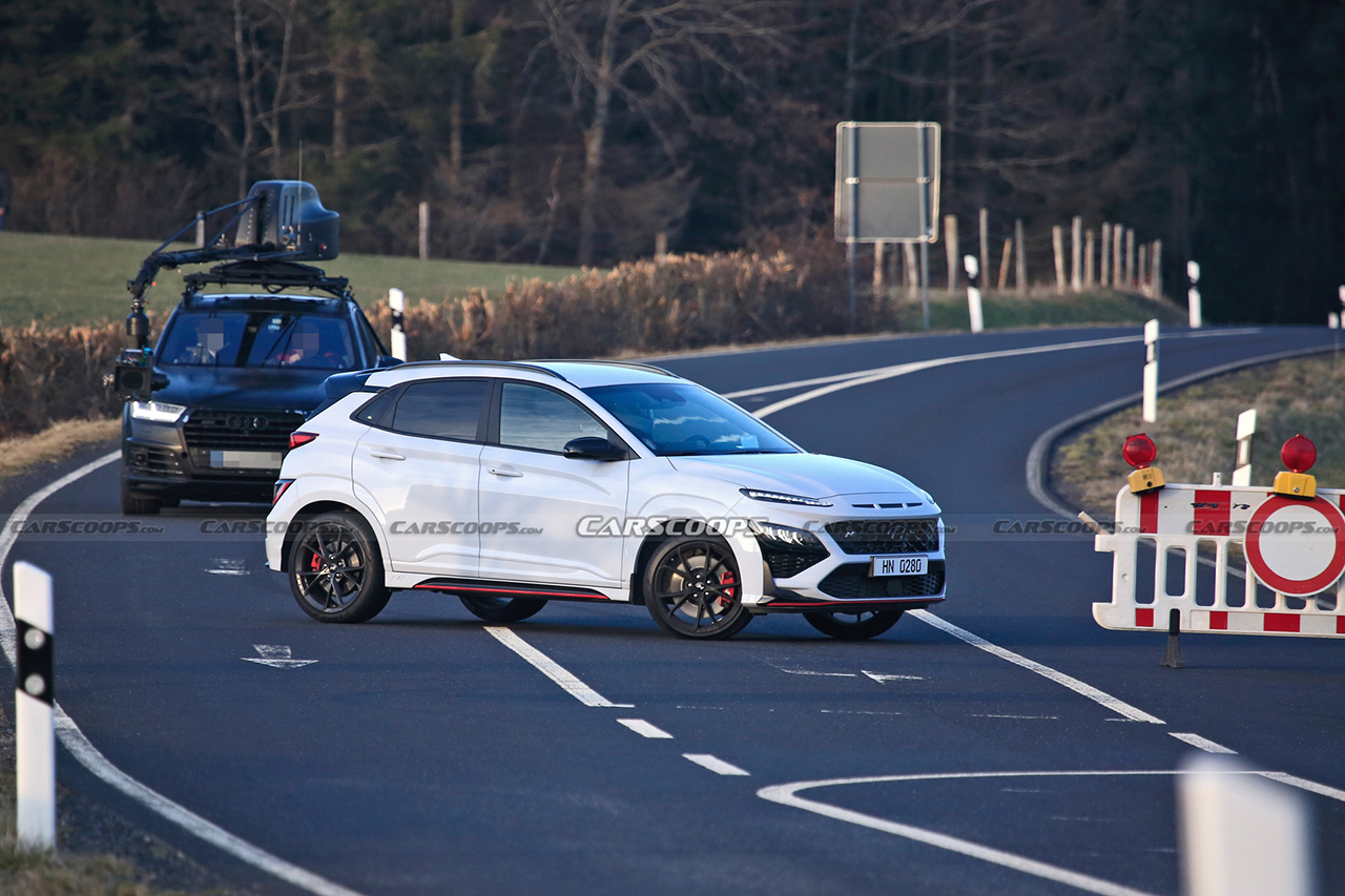현대자동차의 첫 번째 고성능 SUV인 코나 N이 위장막이 완전히 벗겨진 채로 포착됐다. 일반 모델보다 한껏 스포티함이 강조된 모습의 코나 N은 독일 뉘르부르크링 서킷 근처에서 광고 촬영 중 유출됐으며, 비교적 먼 거리에서 촬영되었지만, 코나 N의 전반적인 모습을 모두 확인할 수 있다.