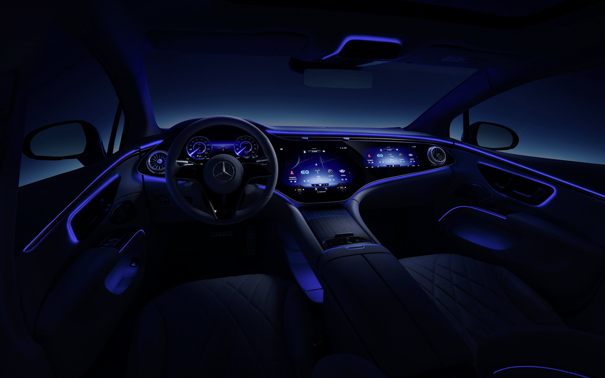 또한 하이퍼스크린 터치 스크린 안쪽에는 총 12개의 액추에이터가 적용됐다. 12개의 액추에이터는 운전자가 화면을 터치할 경우 햅틱 반응으로 마치 버튼을 누르는 것과 같은 직관적인 터치 조작을 제공한다. 만약 하이퍼스크린을 사용하지 않는 상황에서는 실내조명과 함께 조화를 이루는 다양한 배경을 띄울 수 있다.