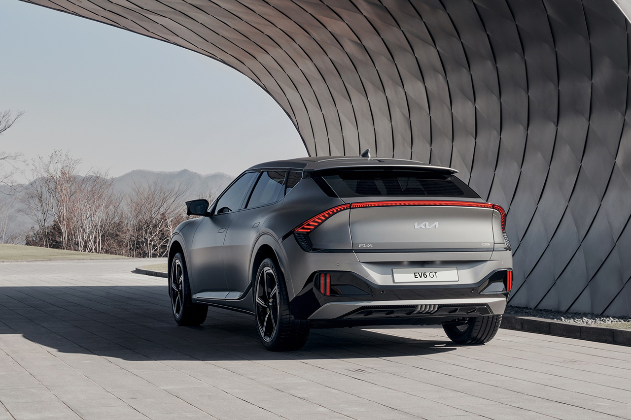 측면부는 사이드 하단에서부터 리어 휠하우스를 관통해 테일 램프까지 이어지는 ‘다이내믹 캐릭터’가 EV6에 강력한 존재감을 부여한다. 여기에 유니크한 형상의 C필러 가니쉬 조형은 마치 차량의 루프를 떠있는 것처럼 느껴지게 한다며, 후면부의 리어 데크 스포일러는 LED 램프와 통합돼 다이내믹한 캐릭터를 완성하면서 윙 타입 루프 스포일러와 함께 최적의 공기역학적 성능을 구현한다.