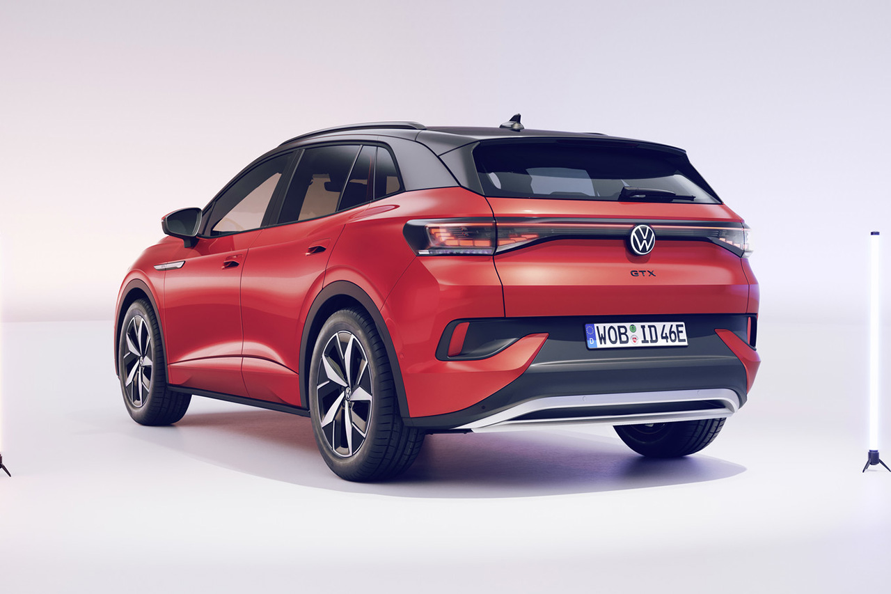 ID.4 GTX의 디자인은 즐거운 주행 감성이 느껴지면서도 강인한 외관이 조화를 이루어 독특한 개성을 보여주고 있다. 익숙한 조명 스트립은 강력하고 역동적인 디자인 요소와 결합되어 있으며 특히 주간 주행등을 구성하는 3개의 허니콤은 차량이 정지된 상태에서도 매우 스포티한 느낌을 주어 마치 골프 GTI와 같은 느낌을 자아낸다. 후면부에는 새롭게 디자인된 범퍼, X자 모양의 브레이크등과 함께 3D LED 테일 라이트가 눈길을 사로잡는다.