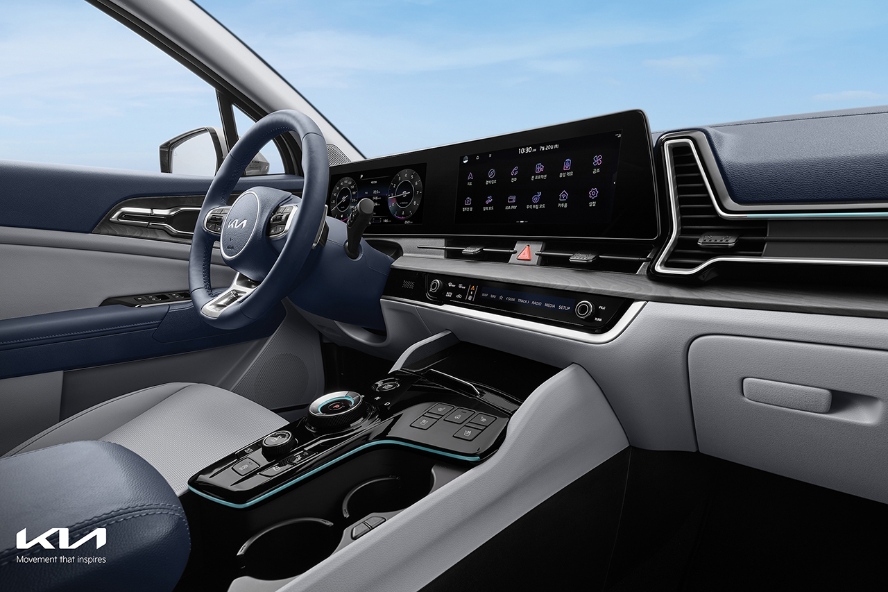 실내는 사용자 중심의 설계에 차급을 뛰어넘는 최첨단 사양과 독창적인 디자인 요소들을 더해 혁신적인 공간으로 거듭났다. 기아는 신형 스포티지에 준대형 세단 K8에 탑재한 파노라믹 커브드 디스플레이를 국내 준중형 SUV 최초로 적용했다.