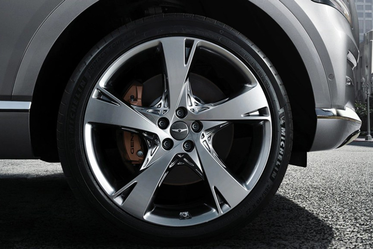 아울러 전륜 모노블럭 브레이크 캘리퍼(4P)를 가솔린 2.5 터보 모델과 3.0 디젤 모델에 확대 적용해 제동 안정성을 높였으며, 가솔린 3.5 터보 모델의 캘리퍼에 브라운 계열의 코퍼 컬러를 새롭게 추가해 고급감을 더했다. 여기에 주행 중 사고가 발생했을 때 1차 충돌 이후 운전자가 일시적으로 차량을 통제하지 못할 경우 자동으로 차량을 제동해 2차 사고를 방지해주는 다중 충돌방지 자동제동 시스템(MCB)을 탑재해 안전성을 높였다.