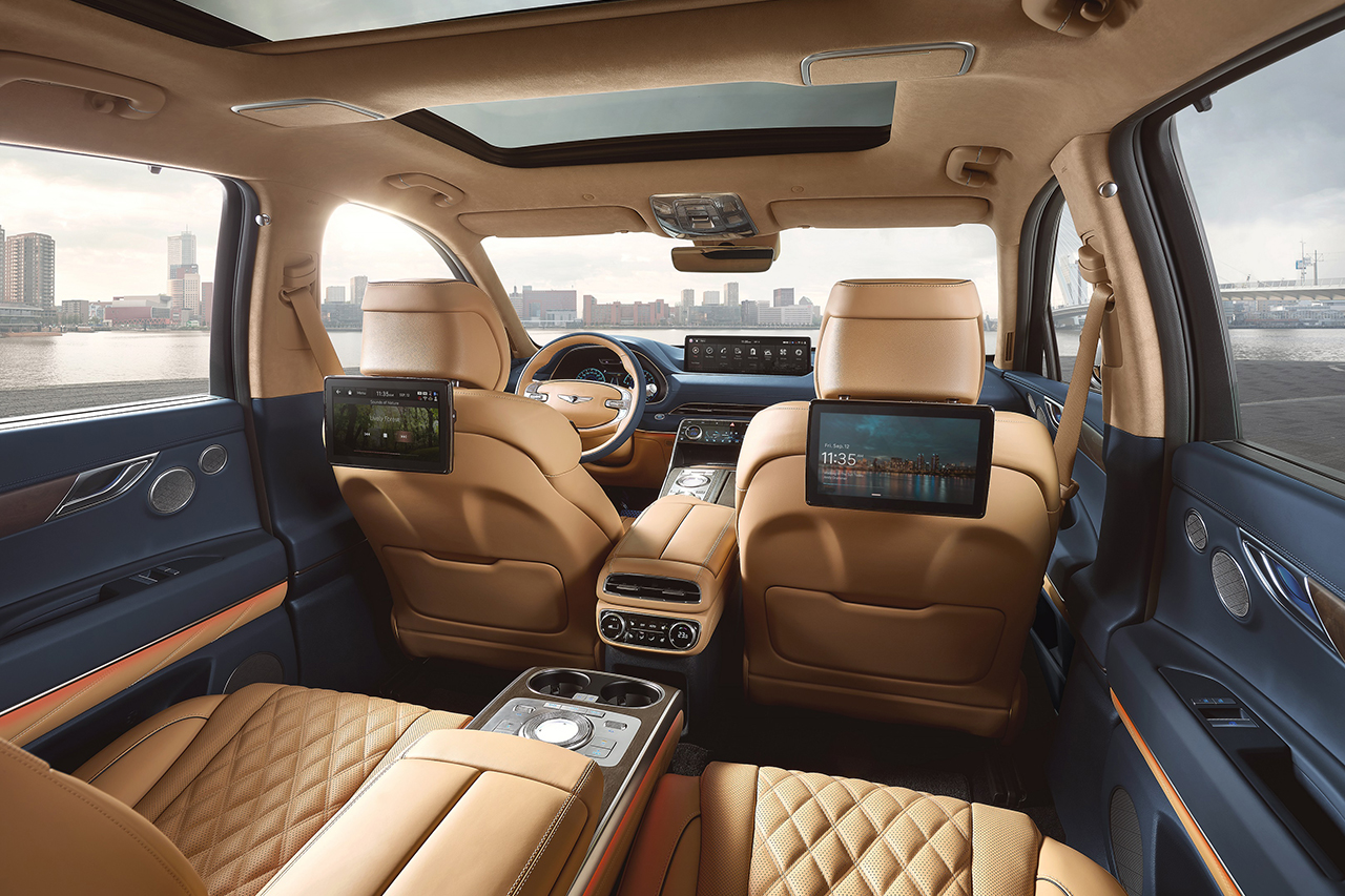 GV80는 기존 5인승과 7인승 모델에서 2열 독립 시트가 적용된 6인승 모델을 추가해 후석 고급감을 강화했다. 6인승 모델은 2열 시트에 1열과 동일한 가니쉬의 센터 콘솔을 비롯 무선 충전 시스템, 컵홀더, 수납함 등을 적용했으며, 2열 컴포트 패키지 선택 시 장착되는 윙 아웃 헤드레스트, 원터치 릴렉스 모드 등을 통해 편의성을 높였다.