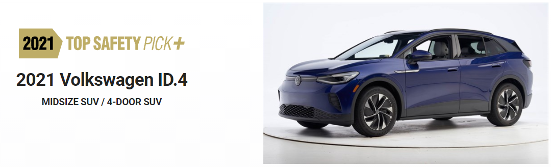 폭스바겐의 첫 번째 순수 전기 SUV ID.4가 미국 고속도로 안전보험협회(IIHS)로부터 최고 안전 등급인 2021 톱 세이프티 픽 플러스(TOP SAFETY PICK+)를 획득했다.