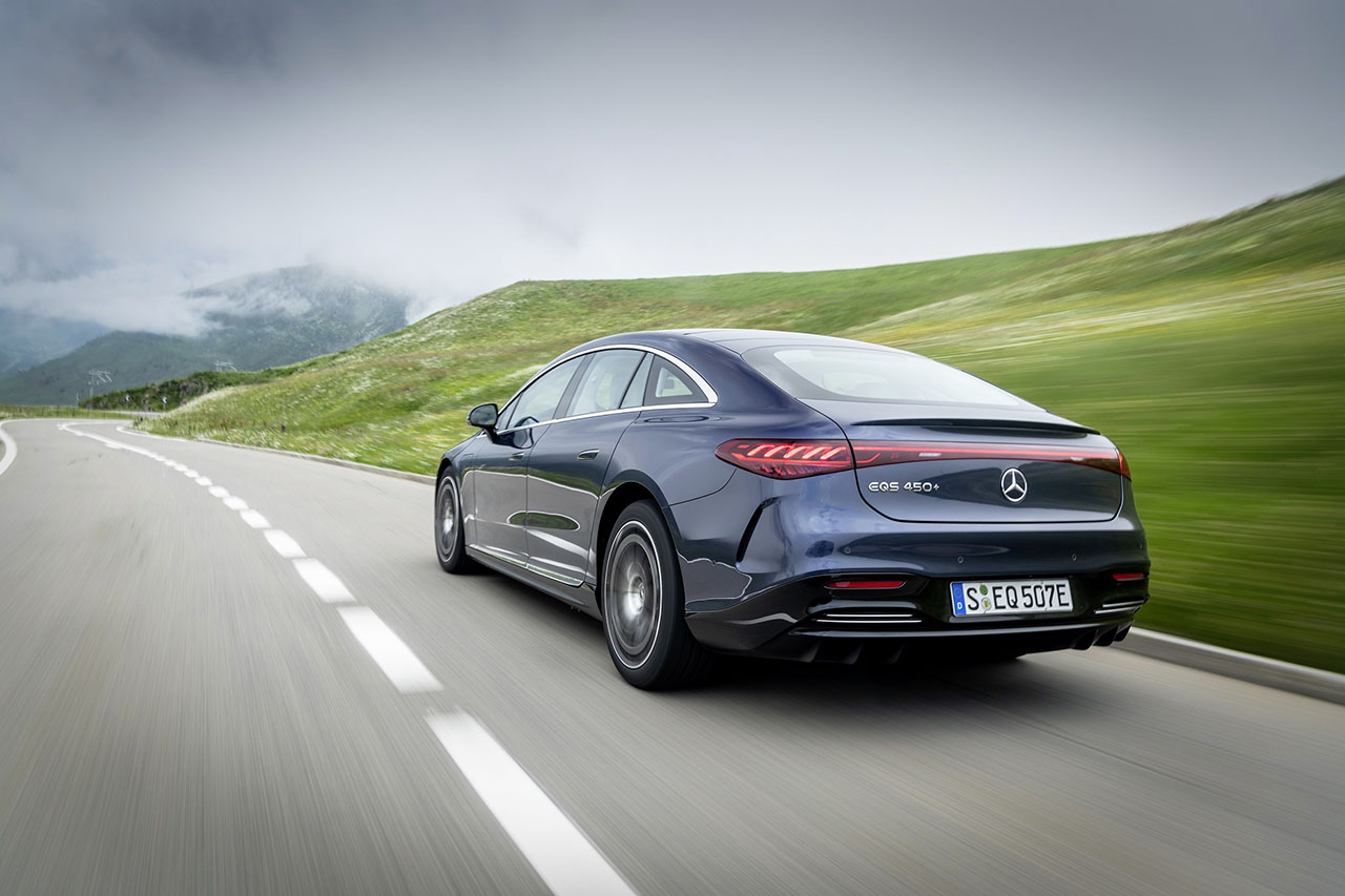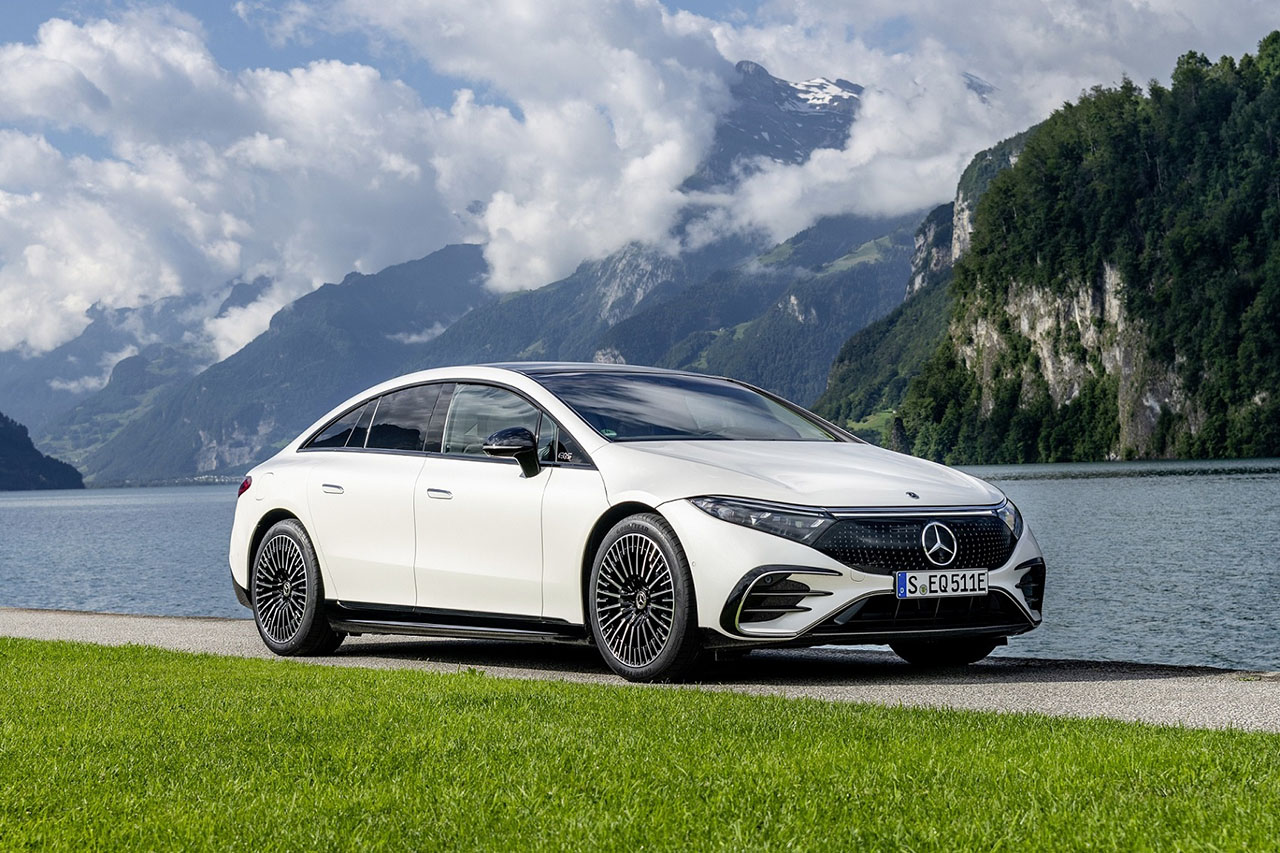 메르세데스 벤츠 EQS는 새로운 전기차 전용 아키텍처를 기반으로 만들어진 플래그십 전기 세단이다. 하나의 활과 같은 원-보우 라인과 A 필러를 앞당긴 캡 포워드 패스트백 스타일로 기존의 내연기관 세단 모델과는 차별화된 외관 디자인을 완성했다. 특히 날렵한 라인을 기반으로 양산차 중 가장 낮은 0.20Cd의 낮은 공기저항 계수를 달성했다.