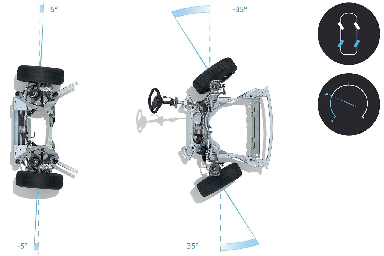 구동 방식에 따라 서스펜션도 다르게 운영된다. 전륜구동 모델은 후륜 토션빔이 적용되며, AWD 모델은 후륜 멀티링크 서스펜션이 적용된다. 여기에 후륜 멀티링크 적용 모델은 조향 엑추에이터가 추가된 후륜 조향 시스템을 지원한다. 조향 각도는 5도 수준으로 10.1m의 적은 회전반경을 제공한다.