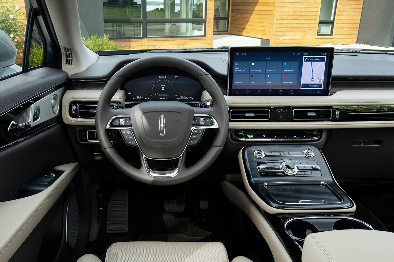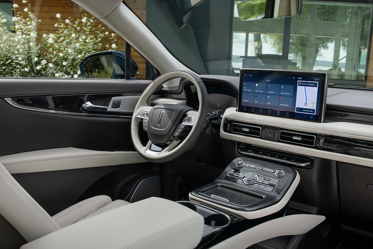 반면 실내는 대대적인 변화가 이뤄졌습니다. 브랜드 슬로건인 ‘고요한 비행’이 반영된 실내는 운전자와 탑승객 모두에게 항공기 일등석과 같은 고급스러운 환경을 제공합니다. 링컨 최신 모델에 사용 중인 12.3인치 디지털 계기판과 13.2인치 대형 플로팅 타입 인포테인먼트 디스플레이가 적용됐습니다. 인포테인먼트 디스플레이는 상위 모델인 에비에이터의 10.1인치 디스플레이보다 더 큰 사이즈입니다.