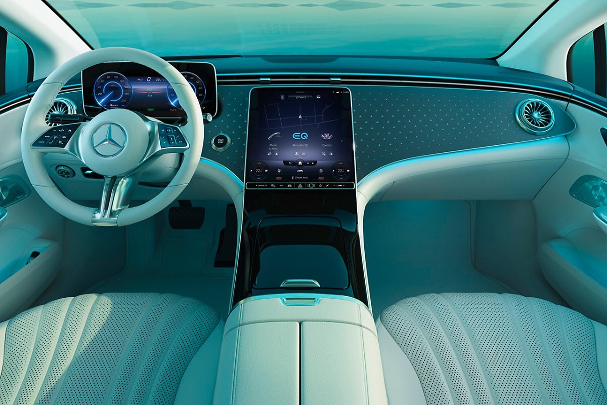 더 뉴 EQE 라인업 중 한국 시장에 먼저 출시되는 EQE 350+의 외관에는 20인치 5-트윈 스포크 경량 알로이 휠과 차량 당 260만 픽셀 이상의 해상도를 자랑하는 디지털 라이트가 기본으로 적용되었으며, 실내에는 12.3인치 운전석 계기반과 중앙의 세로형 12.8인치 OLED 터치 디스플레이가 탑재된다.