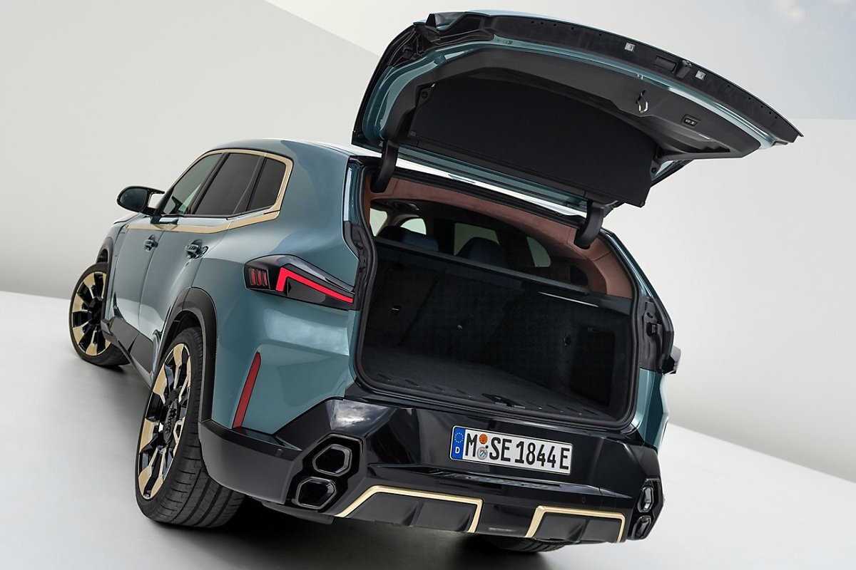 뉴 XM의 전면 분리형 헤드램프는 금색 테두리 및 윤곽 조명이 반영된 BMW 키드니 그릴, 그리고 큼직한 에어 인테이크와 조화를 이뤄 뉴 XM의 강력한 주행 성능을 표현한다. 옆면을 따라 이어지는 금색 액센트 밴드는 M1의 검은색 스트립을 연상시키며, 뒷유리에 양각으로 새겨진 BMW 로고와 루버 구조로 이루어진 조각 같은 리어램프가 클래식한 분위기를 연출한다.